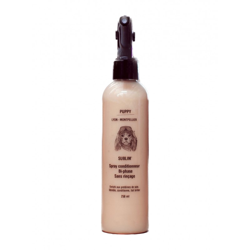 Le soin SUBLIM’ permet de démêler les nœuds, conditionne et fait briller le poil. Enrichi aux protéines de soie, ne se rince pas, antistatique.